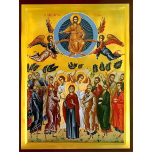 Εικόνα Ορθοδοξίας με περίγραμμα χρυσό σε ξύλο Φλαμουρίας με βάση Εικόνα Ανάληψη Χριστού Χειροποίητη Ελληνορθόδοξη , Κρεμαστή πλάκα βυζαντινής τέχνης, χριστιανική τέχνη Διάσταση 45x35 cm (17,7 x 13,8 ίντσες) INTRAEK-6294671047