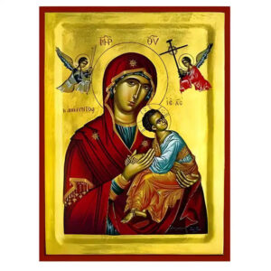 Εικόνα Ορθοδοξίας με περίγραμμα χρυσό σε ξύλο Φλαμουρίας με βάση Εικόνα Παναγία Ακένωτον Ποτήριον Χειροποίητη Ελληνορθόδοξη , Κρεμαστή πλάκα βυζαντινής τέχνης, χριστιανική τέχνη Διάσταση 10x7 cm (3,9 x 2,8 ίντσες) INTRAEK-671332