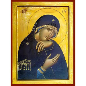 Εικόνα Ορθοδοξίας με περίγραμμα χρυσό σε ξύλο Φλαμουρίας με βάση Εικόνα Παναγία Θρηνωδούσα Χειροποίητη Ελληνορθόδοξη , Κρεμαστή πλάκα βυζαντινής τέχνης, χριστιανική τέχνη Διάσταση 10x7 cm (3,9 x 2,8 ίντσες) INTRAEK-671269