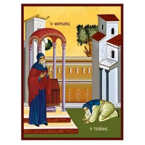 Εικόνα Ορθοδοξίας με περίγραμμα χρυσό σε ξύλο Φλαμουρίας με βάση Εικόνα Παραβολή του Τελώνη και του Φαρισαίου Χειροποίητη Ελληνορθόδοξη , Κρεμαστή πλάκα βυζαντινής τέχνης, χριστιανική τέχνη Διάσταση 45x35 cm (17,7 x 13,8 ίντσες) INTRAEK-6294670960