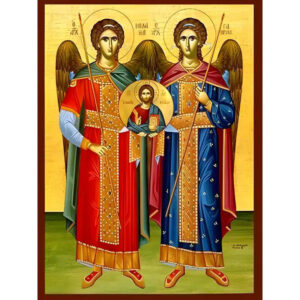 Εικόνα Ορθοδοξίας με περίγραμμα χρυσό σε ξύλο Φλαμουρίας με βάση Εικόνα ΣΥΝΑΞΙΣ ΑΡΧΑΓΓΕΛΩΝ ΜΙΧΑΗΛ, ΓΑΒΡΙΗΛ ΚΑΙ ΡΑΦΑΗΛ, ΟΛΟΣΩΜΟΙ Χειροποίητη Ελληνορθόδοξη εικόνα του Ιησού Χριστού, Κρεμαστή πλάκα βυζαντινής τέχνης, χριστιανική τέχνη Διάσταση 15x11 cm (5,9x4,3 ίντσες) INTRAEK-337757864122