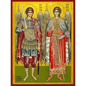 Εικόνα Ορθοδοξίας με περίγραμμα χρυσό σε ξύλο Φλαμουρίας με βάση Εικόνα ΣΥΝΑΞΙΣ ΑΡΧΑΓΓΕΛΩΝ ΜΙΧΑΗΛ ΚΑΙ ΓΑΒΡΙΗΛ, ΟΛΟΣΩΜΟΙ Χειροποίητη Ελληνορθόδοξη εικόνα του Ιησού Χριστού, Κρεμαστή πλάκα βυζαντινής τέχνης, χριστιανική τέχνη Διάσταση 15x11 cm (5,9x4,3 ίντσες) INTRAEK-337757864125