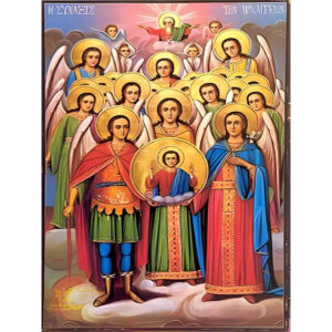 Εικόνα Ορθοδοξίας με περίγραμμα χρυσό σε ξύλο Φλαμουρίας με βάση Εικόνα ΣΥΝΑΞΙΣ ΑΡΧΑΓΓΕΛΩΝ (ΑΣΩΜΑΤΩΝ), ΟΛΟΣΩΜΟΙ Χειροποίητη Ελληνορθόδοξη εικόνα του Ιησού Χριστού, Κρεμαστή πλάκα βυζαντινής τέχνης, χριστιανική τέχνη Διάσταση 15x11 cm (5,9x4,3 ίντσες) INTRAEK-337757864128