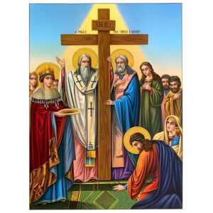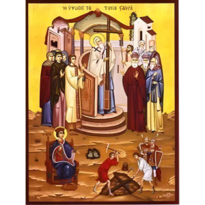 Εικόνα Ορθοδοξίας με περίγραμμα χρυσό σε ξύλο Φλαμουρίας με βάση Εικόνα ΥΨΩΣΙΣ ΚΑΙ ΕΥΡΕΣΙΣ ΤΙΜΙΟΥ ΣΤΑΥΡΟΥ Χειροποίητη Ελληνορθόδοξη εικόνα του Ιησού Χριστού, Κρεμαστή πλάκα βυζαντινής τέχνης, χριστιανική τέχνη Διάσταση 15x11 cm (5,9x4,3 ίντσες) INTRAEK-337757864103