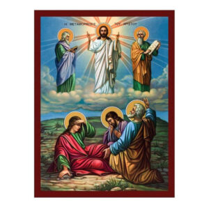 Εικόνα Ορθοδοξίας με περίγραμμα χρυσό σε ξύλο Φλαμουρίας με βάση Η εικόνα της Μεταμόρφωσης του Σωτήρος, Χειροποίητη Ελληνορθόδοξη εικόνα του Ιησού Χριστού, επιτοίχια βυζαντινή τέχνη, θρησκευτική διακόσμηση Διάσταση 45x35 cm (17,7 x 13,8 ίντσες) INTRAEK-543216723731
