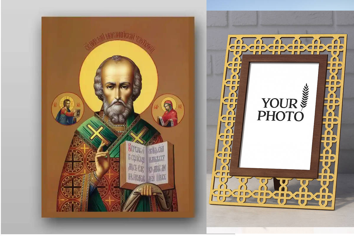 Εικόνα Ορθοδοξίας Πολυτελείας με σχεδιο Σταυρούς μαζι με Βάση σε 8 χρώματα με περίγραμμα χρυσό σε ξύλο Plywood (Πλακάζ) με βάση Εικόνα του Αγίου Νικολάου - Χειροποίητη Ελληνορθόδοξη , Κρεμαστή πλάκα βυζαντινής τέχνης, χριστιανική τέχνη Διάσταση 21x15 cm (8,3 x 5,9 ίντσες) INTRAEK3kadro3211-321312