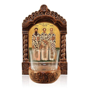 Εικόνα Ορθοδοξίας με περίγραμμα χρυσό σε ξύλο Φλαμουρίας με βάση Λυχνία Αγρυπνίας Τριών Ιεραρχών, Άγιος Βασίλειος ο Μέγας Άγιος Γρηγόριος ο Θεολόγος και Άγιος Ιωάννης ο Χρυσόστομος, Χειροποίητο Κεραμικό Λυχνία Αγρυπνίας Διάσταση 10x7 cm (3,9 x 2,8 ίντσες) INTRAEK-816723890