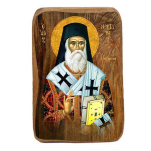 Εικόνα Ορθοδοξίας με περίγραμμα χρυσό σε ξύλο Φλαμουρίας με βάση Μπομπονιέρα Βάπτισης Άγιος Νεκτάριος Σετ 20 τεμαχίων, Εικόνα Βάπτισης, Μπομπονιέρα Χειροποίητη Βυζαντινή εικόνα 9x6cm, Χριστιανικό Δώρο Διάσταση 26x20 cm (10,2 x 7,9 ίντσες) INTRAEK-3216724050