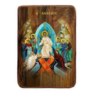 Εικόνα Ορθοδοξίας με περίγραμμα χρυσό σε ξύλο Φλαμουρίας με βάση Μπομπονιέρα Βάπτισης Ανάσταση του Χριστού Σετ 20 τεμαχίων, Εικόνα Βάπτισης, Χειροποίητη Βυζαντινή εικόνα Bomboniera 9x6cm, Χριστιανικό Δώρο Διάσταση 21x15 cm (8,3 x 5,9 ίντσες) INTRAEK-216724112