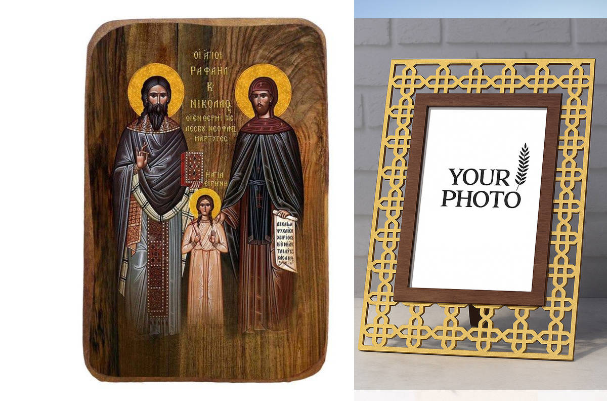 Εικόνα Ορθοδοξίας Πολυτελείας με σχεδιο Σταυρούς μαζι με Βάση σε 8 χρώματα με περίγραμμα χρυσό σε ξύλο Plywood (Πλακάζ) με βάση Μπομπονιέρα Βάπτισης Άγιοι Ραφαήλ, Νικόλαος και Ειρήνη Σετ 20 τεμαχίων, Εικόνα Βάπτισης, Χειροποίητη εικόνα Bomboniera 9x6cm, Χριστιανικό Δώρο Διάσταση 26x20 cm (10,2 x 7,9 ίντσες) INTRAEK3kadro3211-3216724037