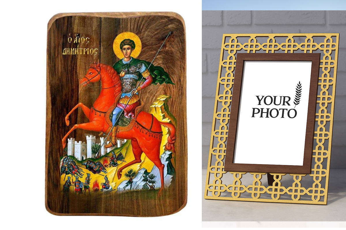 Εικόνα Ορθοδοξίας Πολυτελείας με σχεδιο Σταυρούς μαζι με Βάση σε 8 χρώματα με περίγραμμα χρυσό σε ξύλο Plywood (Πλακάζ) με βάση Μπομπονιέρα βάπτισης Άγιος Δημήτριος Σετ 20 τεμαχίων, Εικόνα Βάπτισης, Χειροποίητη Βυζαντινή εικόνα Bomboniera 9x6cm, Χριστιανικό Δώρο Διάσταση 21x15 cm (8,3 x 5,9 ίντσες) INTRAEK3kadro3211-216724105