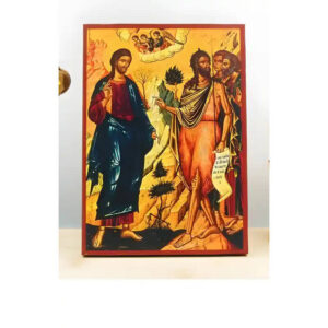 Εικόνα Ορθοδοξίας με περίγραμμα χρυσό σε ξύλο Φλαμουρίας με βάση Ο Ιησούς Χριστός και ο Άγιος Ιωάννης ο Πρόδρομος «Ιδού το αρνί του Θεού», Ξύλινη Χειροποίητη Εικόνα Ελληνικού Βυζαντινού Στυλ Κρεμασμένη σε Πλάκα Χειροποίητη Ελληνορθόδοξη εικόνα του Ιησού Χριστού, Κρεμαστή πλάκα βυζαντινής τέχνης, χριστιανική τέχνη 45x35 cm (17,7 x 13,8 ίντσες) INTRAEK-342110968