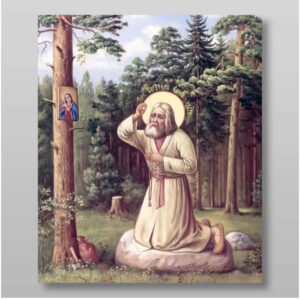 Εικόνα Ορθοδοξίας με περίγραμμα χρυσό σε ξύλο Φλαμουρίας με βάση Σεραφείμ του Σάρωφ αιδεσιμότατος, Χειροποίητη Ελληνορθόδοξη , Κρεμαστή πλάκα βυζαντινής τέχνης, χριστιανική τέχνη Διάσταση 10x7 cm (3,9 x 2,8 ίντσες) INTRAEK-71222