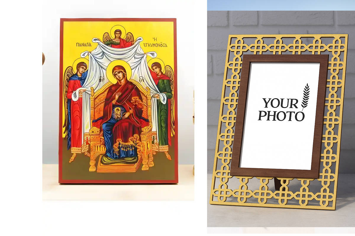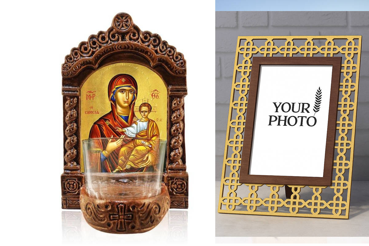 Εικόνα Ορθοδοξίας Πολυτελείας με σχεδιο Σταυρούς μαζι με Βάση σε 8 χρώματα με περίγραμμα χρυσό σε ξύλο Plywood (Πλακάζ) με βάση Παναγία Σουμελά Φωτιστικό Αγρυπνίας, Παναγία Σουμελά Ελληνικής κατασκευής Επιτραπέζια Εικόνα, Χειροποίητο Κεραμικό Φωτιστικό Αγρυπνίας με Γυάλινο Κύπελλο Διάσταση 15x11 cm (5,9 x 4,3 ίντσες) INTRAEK3kadro3211-16723870