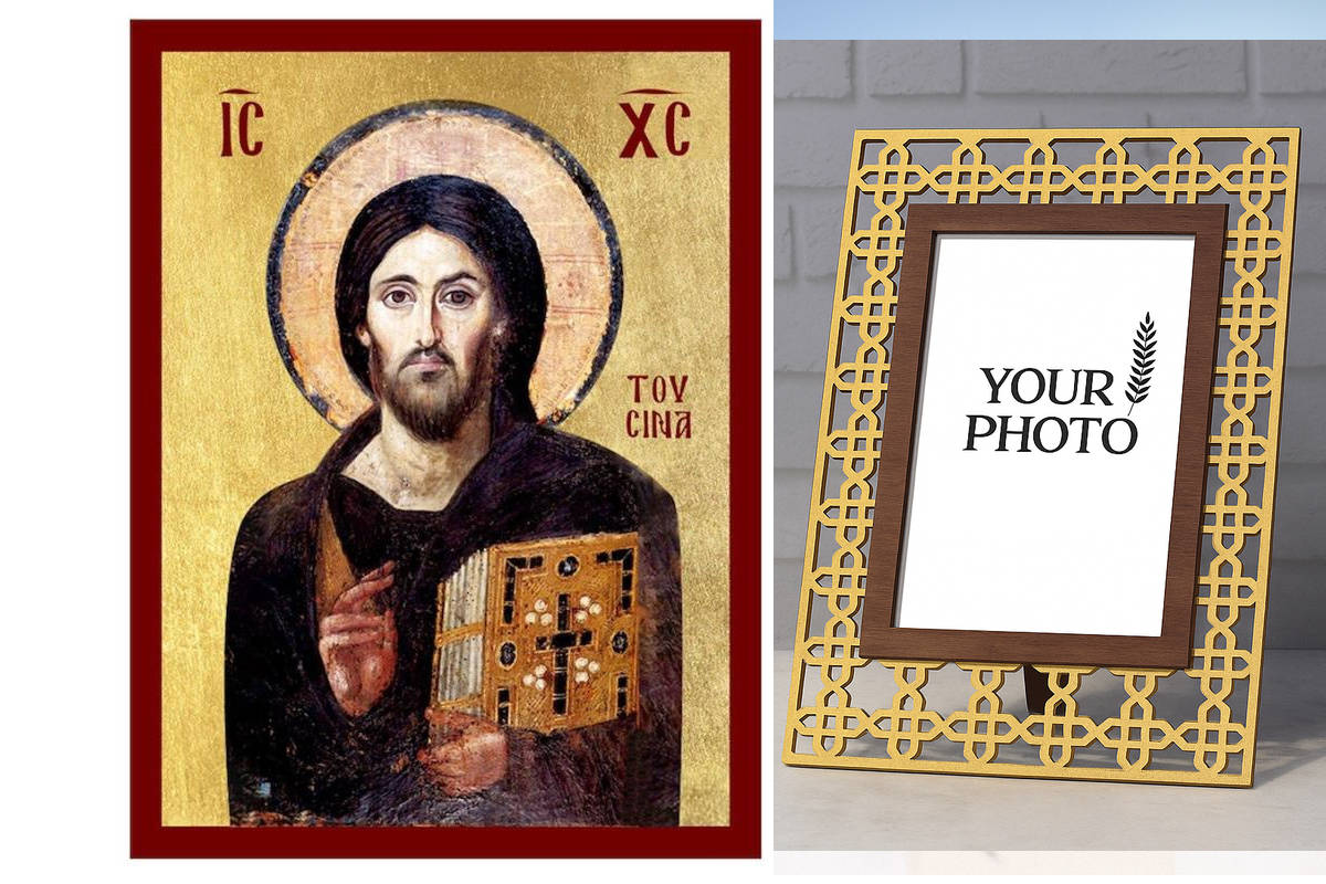 Εικόνα Ορθοδοξίας Πολυτελείας με σχεδιο Σταυρούς μαζι με Βάση σε 8 χρώματα με περίγραμμα χρυσό σε ξύλο Plywood (Πλακάζ) με βάση Εικόνα του Ιησού Χριστού του Σινά, Χειροποίητη Ελληνορθόδοξη εικόνα του Ιησού Χριστού, Κρεμαστή πλάκα βυζαντινής τέχνης, χριστιανική τέχνη Διάσταση 21x15 cm (8,3 x 5,9 ίντσες) INTRAEK3kadro3211-216724232
