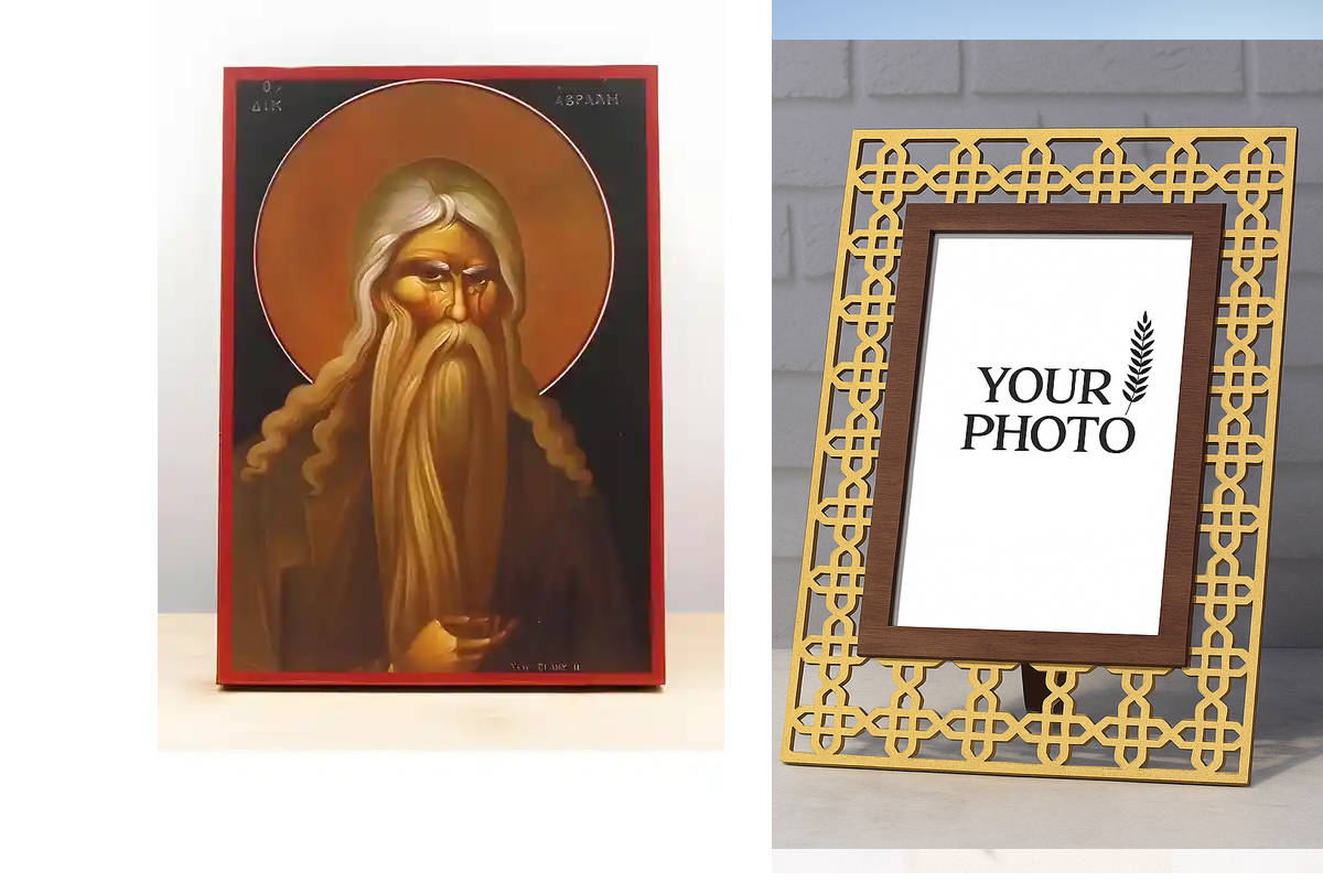 Εικόνα Ορθοδοξίας Πολυτελείας με σχεδιο Σταυρούς μαζι με Βάση σε 8 χρώματα με περίγραμμα χρυσό σε ξύλο Plywood (Πλακάζ) με βάση Αβραάμ ο Δίκαιος, Ξύλινη Χειροποίητη Εικόνα Ελληνικής Premium Βυζαντινού Στυλ Κρεμασμένη σε ξύλινη πλάκα Χειροποίητη Ελληνορθόδοξη εικόνα του Ιησού Χριστού, Κρεμαστή πλάκα βυζαντινής τέχνης, χριστιανική τέχνη Διάσταση 10x7 cm (3,9 x 2,8 ίντσες) INTRAEK3kadro3211-11086