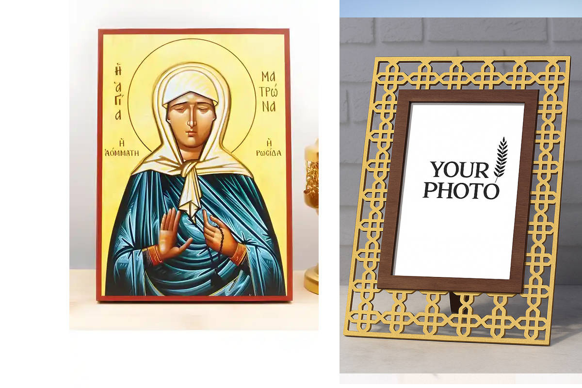 Εικόνα Ορθοδοξίας Πολυτελείας με σχεδιο Σταυρούς μαζι με Βάση σε 8 χρώματα με περίγραμμα χρυσό σε ξύλο Plywood (Πλακάζ) με βάση Αγία Ματρώνα Νικόνοβα η Θαυματουργός της Μόσχας, Ξύλινη Χειροποίητη Εικόνα Ελληνικού Βυζαντινού Στυλ υψηλής ποιότητας που κρέμεται σε ξύλινη πλάκα Χειροποίητη Ελληνορθόδοξη εικόνα του Ιησού Χριστού, Κρεμαστή πλάκα βυζαντινής τέχνης, χριστιανική τέχνη Διάσταση 10x7 cm (3,9 x 2,8 ίντσες) INTRAEK3kadro3211-10818