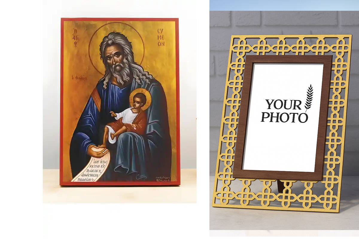 Εικόνα Ορθοδοξίας Πολυτελείας με σχεδιο Σταυρούς μαζι με Βάση σε 8 χρώματα με περίγραμμα χρυσό σε ξύλο Plywood (Πλακάζ) με βάση Άγιος Συμεών ο Θεολήπτης, Ξύλινη Χειροποίητη Εικόνα Ελληνικής Κορυφαίας Βυζαντινής τεχνοτροπίας Κρεμασμένη σε ξύλινη πλάκα Χειροποίητη Ελληνορθόδοξη εικόνα του Ιησού Χριστού, Κρεμαστή πλάκα βυζαντινής τέχνης, χριστιανική τέχνη Διάσταση 26x20 cm (10,2 x 7,9 ίντσες) INTRAEK3kadro3211-22611010