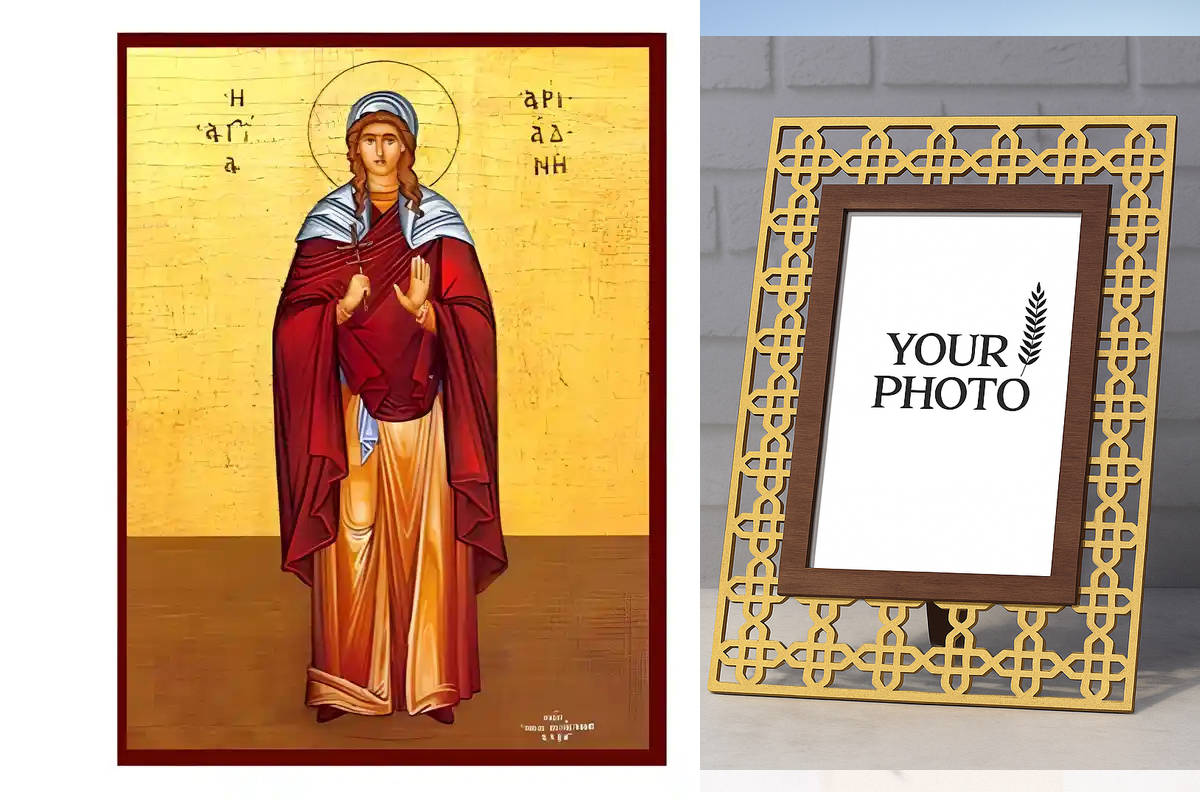Εικόνα Ορθοδοξίας Πολυτελείας με σχεδιο Σταυρούς μαζι με Βάση σε 8 χρώματα με περίγραμμα χρυσό σε ξύλο Plywood (Πλακάζ) με βάση Εικόνα Αγία Αριάδνη Χειροποίητη Ελληνορθόδοξη , Κρεμαστή πλάκα βυζαντινής τέχνης, χριστιανική τέχνη Διάσταση 10x7 cm (3,9 x 2,8 ίντσες) INTRAEK3kadro3211-670672