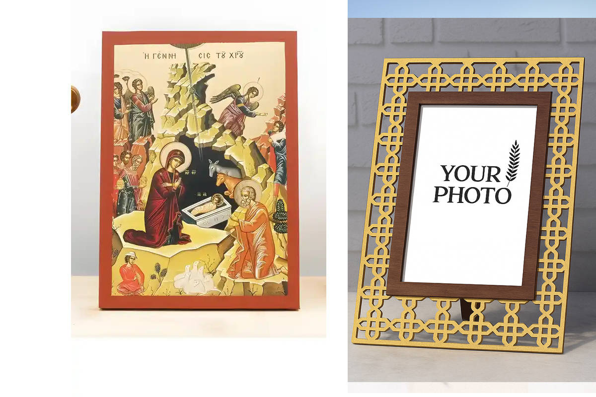 Εικόνα Ορθοδοξίας Πολυτελείας με σχεδιο Σταυρούς μαζι με Βάση σε 8 χρώματα με περίγραμμα χρυσό σε ξύλο Plywood (Πλακάζ) με βάση Γένεση του Ιησού Χριστού, Ξύλινη Χειροποίητη Εικόνα με χρυσό φύλλο Ελληνικού Premium Βυζαντινού Στυλ Κρεμασμένο σε ξύλινη πλάκα Θρησκευτικό Χειροποίητη Ελληνορθόδοξη εικόνα του Ιησού Χριστού, Κρεμαστή πλάκα βυζαντινής τέχνης, χριστιανική τέχνη Διάσταση 15x11 cm (5,9 x 4,3 ίντσες) INTRAEK3kadro3211-610997