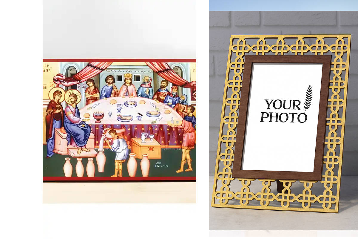 Εικόνα Ορθοδοξίας Πολυτελείας με σχεδιο Σταυρούς μαζι με Βάση σε 8 χρώματα με περίγραμμα χρυσό σε ξύλο Plywood (Πλακάζ) με βάση Γάμος Ιησούς Χριστός στην Κανά, Ξύλινη Χειροποίητη Εικόνα Ελληνικού Premium Βυζαντινού Στυλ τοίχου που κρεμιέται σε ξύλινη πλάκα Ορθόδοξο θρησκευτικό θέμα Χειροποίητη Ελληνορθόδοξη εικόνα του Ιησού Χριστού, Κρεμαστή πλάκα βυζαντινής τέχνης, χριστιανική τέχνη 45x35 cm (17,7 x 13,8 ίντσες) INTRAEK3kadro3211-342111185