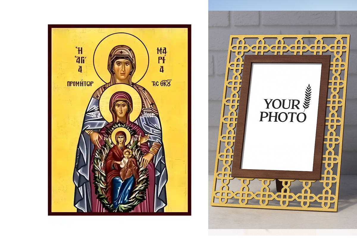 Εικόνα Ορθοδοξίας Πολυτελείας με σχεδιο Σταυρούς μαζι με Βάση σε 8 χρώματα με περίγραμμα χρυσό σε ξύλο Plywood (Πλακάζ) με βάση Εικόνα Αγία Προμήτωρ Παναγία, Αγία Άννα, Παναγία και Χριστός Χειροποίητη Ελληνορθόδοξη , Κρεμαστή πλάκα βυζαντινής τέχνης, χριστιανική τέχνη Διάσταση 10x7 cm (3,9 x 2,8 ίντσες) INTRAEK3kadro3211-671075