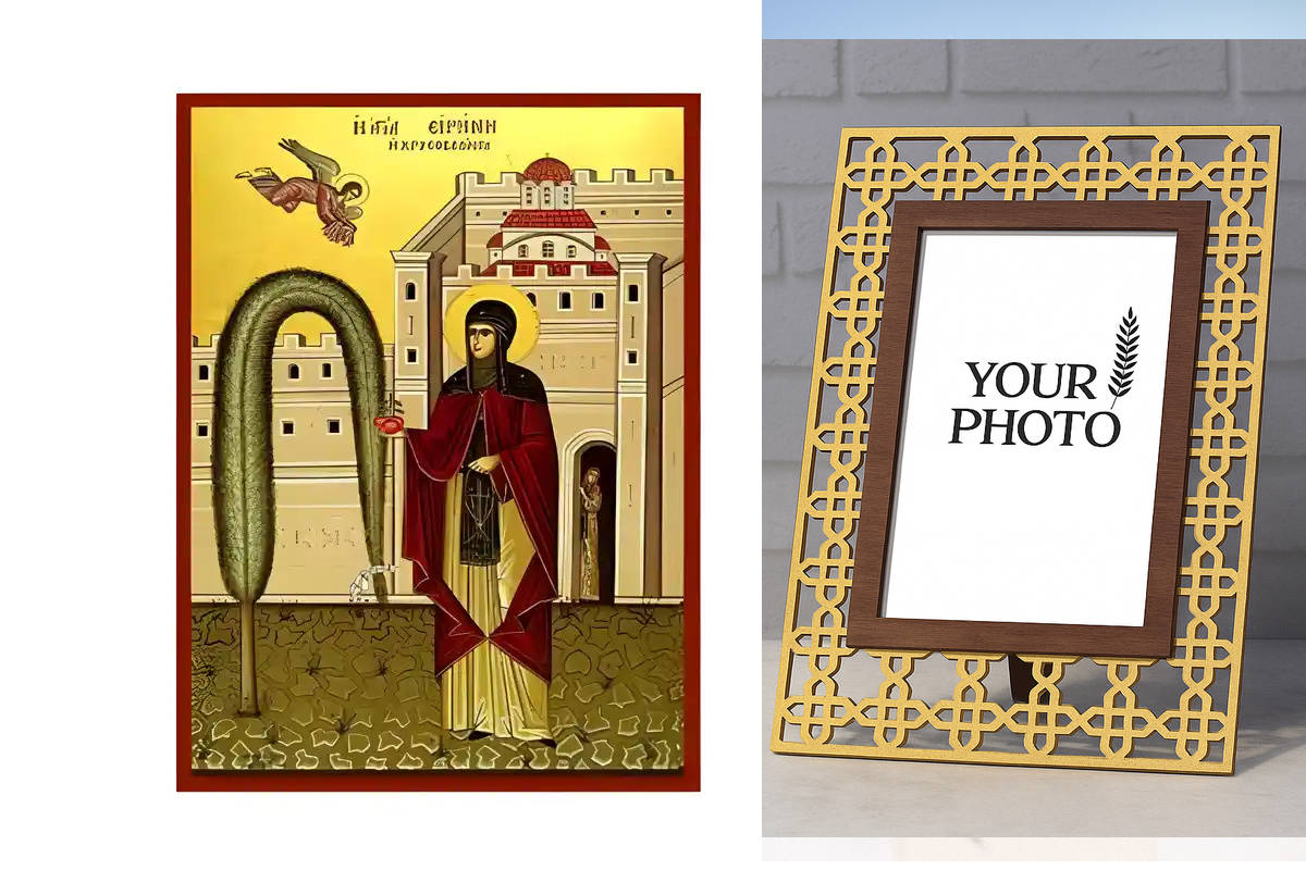 Εικόνα Ορθοδοξίας Πολυτελείας με σχεδιο Σταυρούς μαζι με Βάση σε 8 χρώματα με περίγραμμα χρυσό σε ξύλο Plywood (Πλακάζ) με βάση Εικόνα Αγία Ειρήνη Χρυσοβαλάντου Χειροποίητη Ελληνορθόδοξη , Κρεμαστή πλάκα βυζαντινής τέχνης, χριστιανική τέχνη Διάσταση 10x7 cm (3,9 x 2,8 ίντσες) INTRAEK3kadro3211-670648