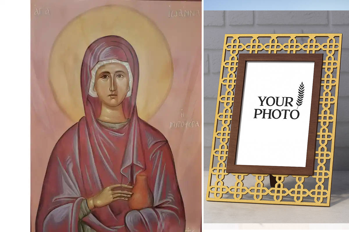 Εικόνα Ορθοδοξίας Πολυτελείας με σχεδιο Σταυρούς μαζι με Βάση σε 8 χρώματα με περίγραμμα χρυσό σε ξύλο Plywood (Πλακάζ) με βάση Εικόνα Αγία Ιωάννα Χειροποίητη Ελληνορθόδοξη , Κρεμαστή πλάκα βυζαντινής τέχνης, χριστιανική τέχνη Διάσταση 10x7 cm (3,9 x 2,8 ίντσες) INTRAEK3kadro3211-670603