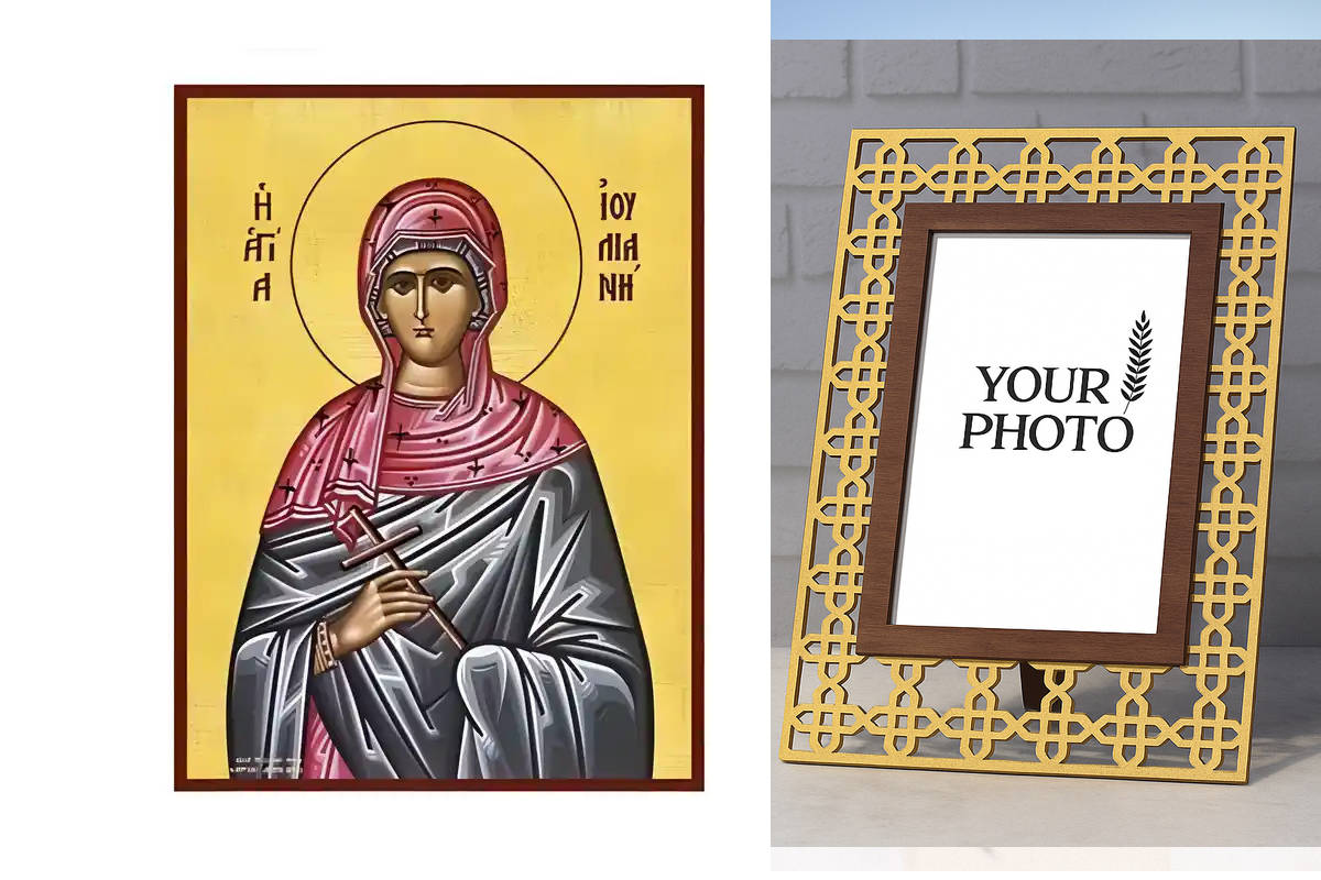 Εικόνα Ορθοδοξίας Πολυτελείας με σχεδιο Σταυρούς μαζι με Βάση σε 8 χρώματα με περίγραμμα χρυσό σε ξύλο Plywood (Πλακάζ) με βάση Εικόνα Αγία Ιουλιανή Χειροποίητη Ελληνορθόδοξη , Κρεμαστή πλάκα βυζαντινής τέχνης, χριστιανική τέχνη Διάσταση 10x7 cm (3,9 x 2,8 ίντσες) INTRAEK3kadro3211-670393