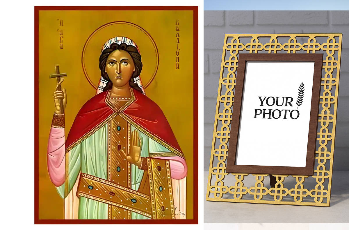 Εικόνα Ορθοδοξίας Πολυτελείας με σχεδιο Σταυρούς μαζι με Βάση σε 8 χρώματα με περίγραμμα χρυσό σε ξύλο Plywood (Πλακάζ) με βάση Εικόνα Αγία Καλλινίκη Χειροποίητη Ελληνορθόδοξη , Κρεμαστή πλάκα βυζαντινής τέχνης, χριστιανική τέχνη Διάσταση 10x7 cm (3,9 x 2,8 ίντσες) INTRAEK3kadro3211-670602