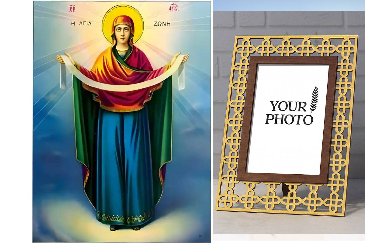 Εικόνα Ορθοδοξίας Πολυτελείας με σχεδιο Σταυρούς μαζι με Βάση σε 8 χρώματα με περίγραμμα χρυσό σε ξύλο Plywood (Πλακάζ) με βάση Εικόνα Παναγία, Κατάθεση Τίμιας Ζώνης Χειροποίητη Ελληνορθόδοξη , Κρεμαστή πλάκα βυζαντινής τέχνης, χριστιανική τέχνη Διάσταση 15x11 cm (5,9 x 4,3 ίντσες) INTRAEK3kadro3211-8671186