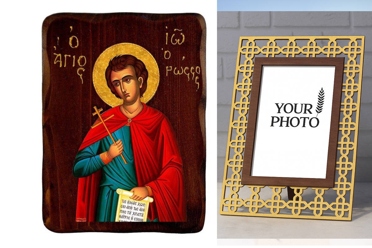 Εικόνα Ορθοδοξίας Πολυτελείας με σχεδιο Σταυρούς μαζι με Βάση σε 8 χρώματα με περίγραμμα χρυσό σε ξύλο Plywood (Πλακάζ) με βάση Εικόνα του Αγίου Ιωάννη του Ρώσου, Χειροποίητη ελληνορθόδοξη εικόνα του Αγίου Ιωάννη, επιτοίχια βυζαντινή τέχνη, θρησκευτικό δώρο, χριστιανική διακόσμηση Διάσταση 21x15 cm (8,3 x 5,9 ίντσες) INTRAEK3kadro3211-216723961