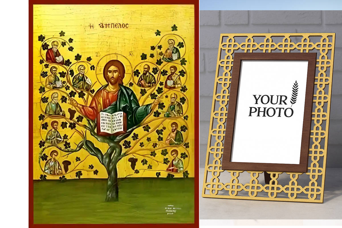 Εικόνα Ορθοδοξίας Πολυτελείας με σχεδιο Σταυρούς μαζι με Βάση σε 8 χρώματα με περίγραμμα χρυσό σε ξύλο Plywood (Πλακάζ) με βάση Εικόνα Χριστός, η Άμπελος Χειροποίητη Ελληνορθόδοξη , Κρεμαστή πλάκα βυζαντινής τέχνης, χριστιανική τέχνη Διάσταση 10x7 cm (3,9 x 2,8 ίντσες) INTRAEK3kadro3211-670729
