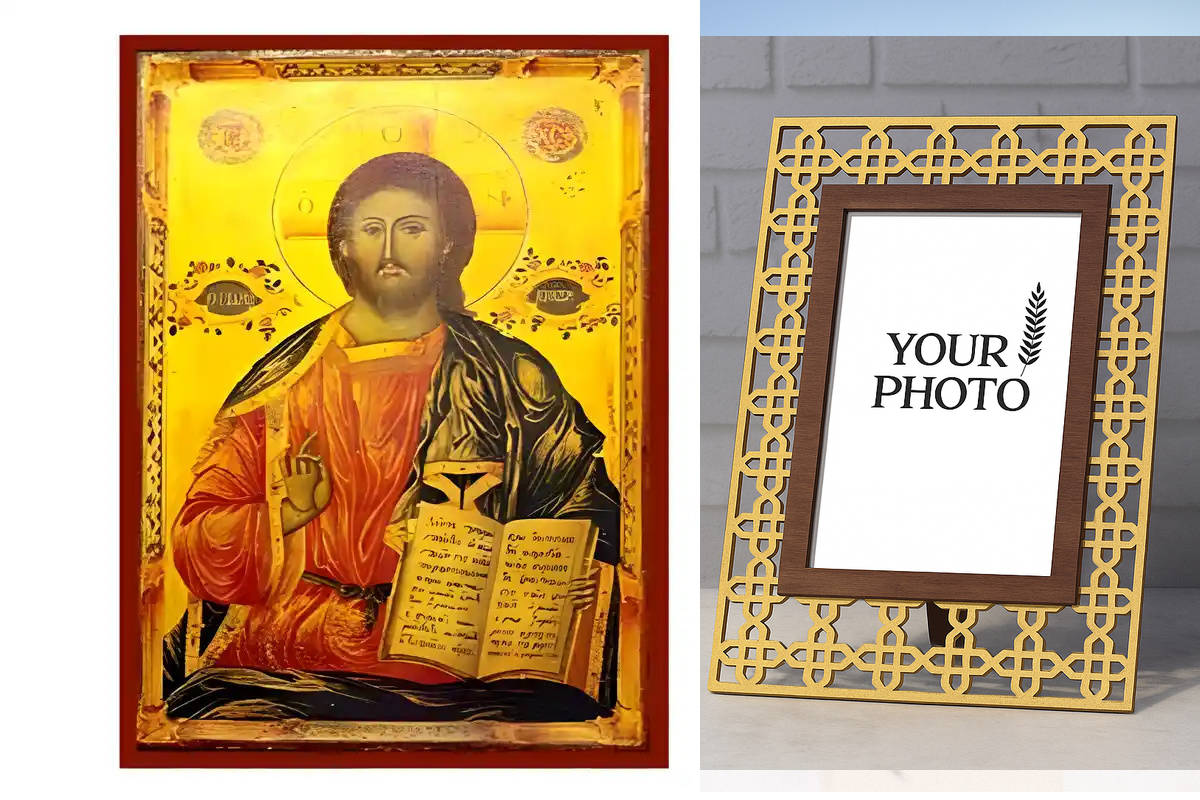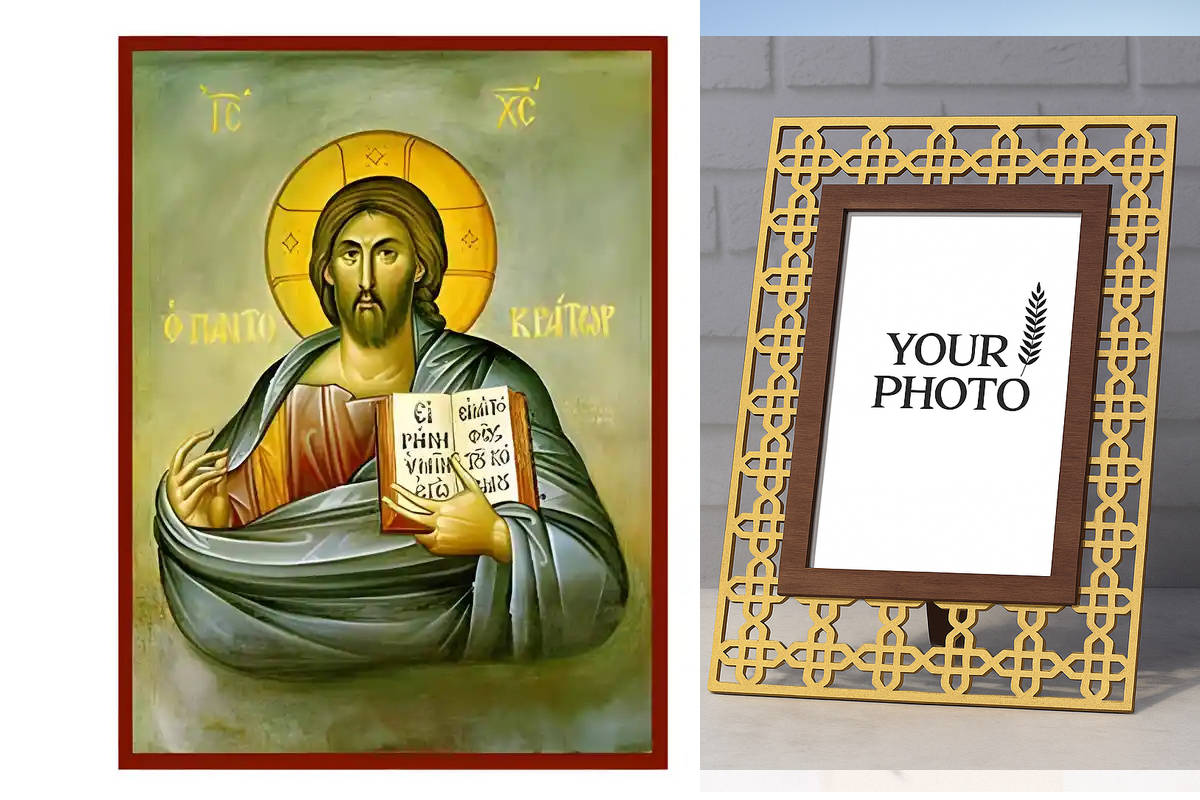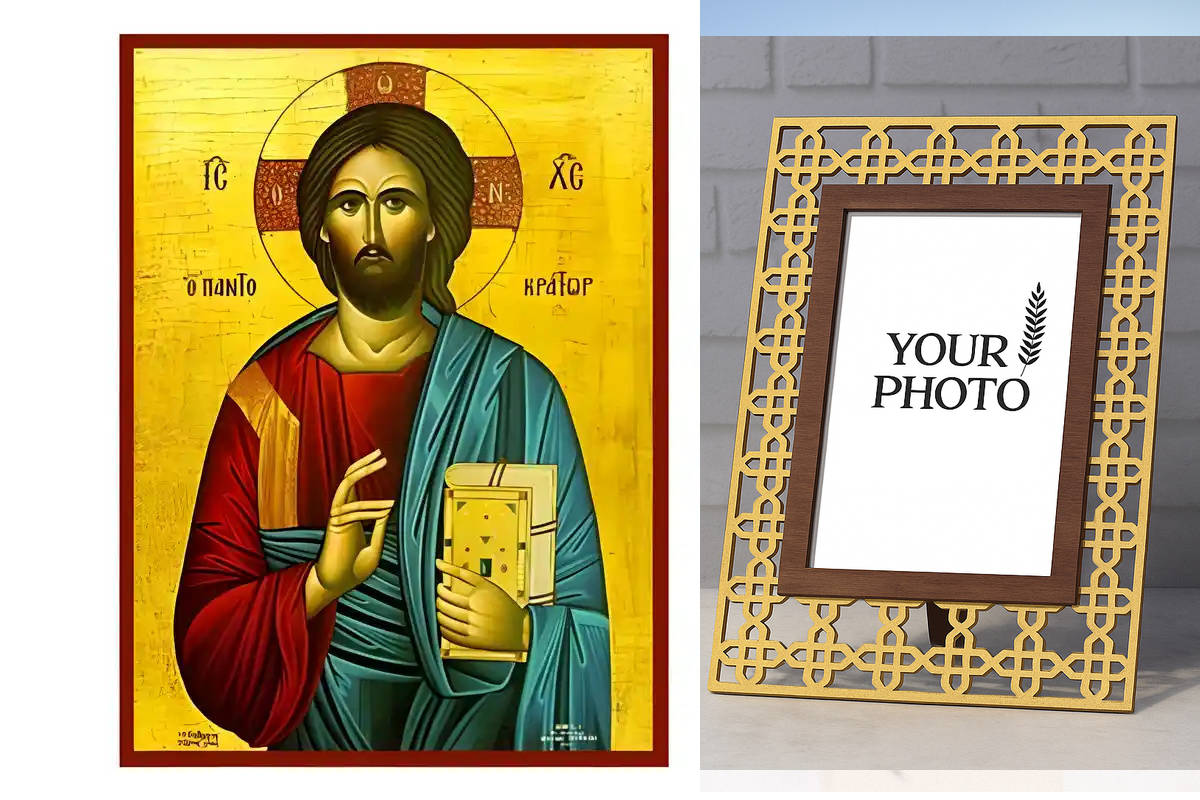 Εικόνα Ορθοδοξίας Πολυτελείας με σχεδιο Σταυρούς μαζι με Βάση σε 8 χρώματα με περίγραμμα χρυσό σε ξύλο Plywood (Πλακάζ) με βάση Εικόνα Χριστός Παντοκράτωρ Χειροποίητη Ελληνορθόδοξη , Κρεμαστή πλάκα βυζαντινής τέχνης, χριστιανική τέχνη Διάσταση 10x7 cm (3,9 x 2,8 ίντσες) INTRAEK3kadro3211-670735