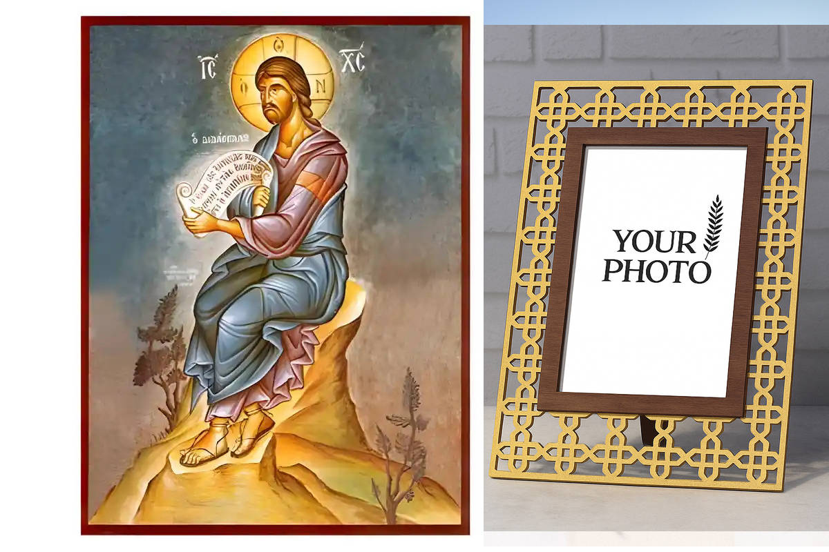 Εικόνα Ορθοδοξίας Πολυτελείας με σχεδιο Σταυρούς μαζι με Βάση σε 8 χρώματα με περίγραμμα χρυσό σε ξύλο Plywood (Πλακάζ) με βάση Εικόνα Χριστός, ο Διδάσκαλος Χειροποίητη Ελληνορθόδοξη , Κρεμαστή πλάκα βυζαντινής τέχνης, χριστιανική τέχνη Διάσταση 10x7 cm (3,9 x 2,8 ίντσες) INTRAEK3kadro3211-670727