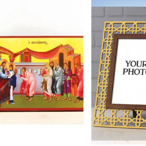 Εικόνα Ορθοδοξίας Πολυτελείας με σχεδιο Σταυρούς μαζι με Βάση σε 8 χρώματα με περίγραμμα χρυσό σε ξύλο Plywood (Πλακάζ) με βάση Ευχαριστιακή Κοινωνία του Αίματος του Ιησού Χριστού Μετάληψη, Ξύλινη Χειροποίητη Εικόνα Ελληνικής Premium Βυζαντινής τεχνοτροπίας Κρεμασμένη σε ξύλινη πλάκα Χειροποίητη Ελληνορθόδοξη εικόνα του Ιησού Χριστού, Κρεμαστή πλάκα βυζαντινής τέχνης, χριστιανική τέχνη Διάσταση 10x7 cm (3,9 x 2,8 ίντσες) INTRAEK3kadro3211-11072