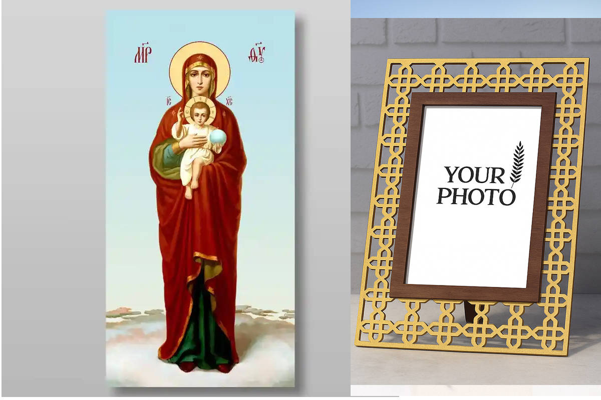 Εικόνα Ορθοδοξίας Πολυτελείας με σχεδιο Σταυρούς μαζι με Βάση σε 8 χρώματα με περίγραμμα χρυσό σε ξύλο Plywood (Πλακάζ) με βάση Η Μητέρα του Θεού Volynskaya Χειροποίητη Ελληνορθόδοξη , Κρεμαστή πλάκα βυζαντινής τέχνης, χριστιανική τέχνη Διάσταση 26x20 cm (10,2 x 7,9 ίντσες) INTRAEK3kadro3211-432972