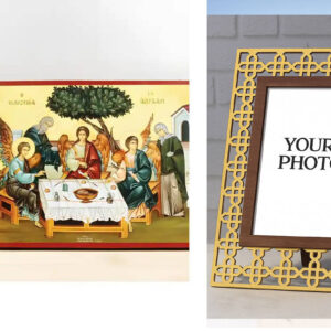 Εικόνα Ορθοδοξίας Πολυτελείας με σχεδιο Σταυρούς μαζι με Βάση σε 8 χρώματα με περίγραμμα χρυσό σε ξύλο Plywood (Πλακάζ) με βάση Η Φιλοξενία του Αβραάμ και της Σάρας, Ξύλινη Χειροποίητη Εικόνα Ελληνικού Βυζαντινού Στυλ τοίχου που κρέμεται σε ξύλινη πλάκα Θρησκευτικό θέμα Χειροποίητη Ελληνορθόδοξη εικόνα του Ιησού Χριστού, Κρεμαστή πλάκα βυζαντινής τέχνης, χριστιανική τέχνη Διάσταση 10x7 cm (3,9 x 2,8 ίντσες) INTRAEK3kadro3211-10966
