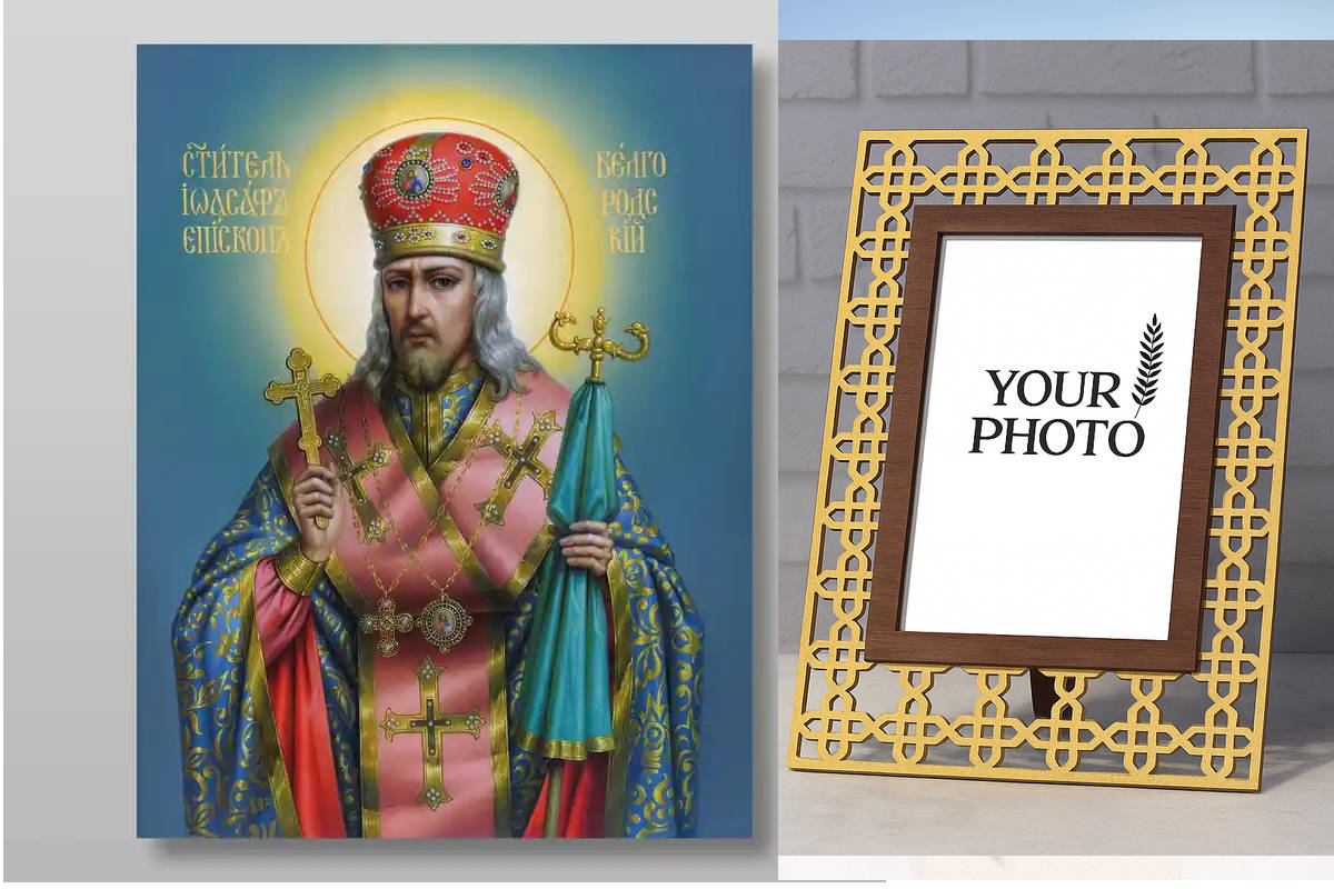 Εικόνα Ορθοδοξίας Πολυτελείας με σχεδιο Σταυρούς μαζι με Βάση σε 8 χρώματα με περίγραμμα χρυσό σε ξύλο Plywood (Πλακάζ) με βάση Ιωάσαφ του Μπελγκορόντ ιερός επίσκοπος, Χειροποίητη Ελληνορθόδοξη , Κρεμαστή πλάκα βυζαντινής τέχνης, χριστιανική τέχνη Διάσταση 50x40 cm (19,7 x 15,8 ίντσες) INTRAEK3kadro3211-65432736