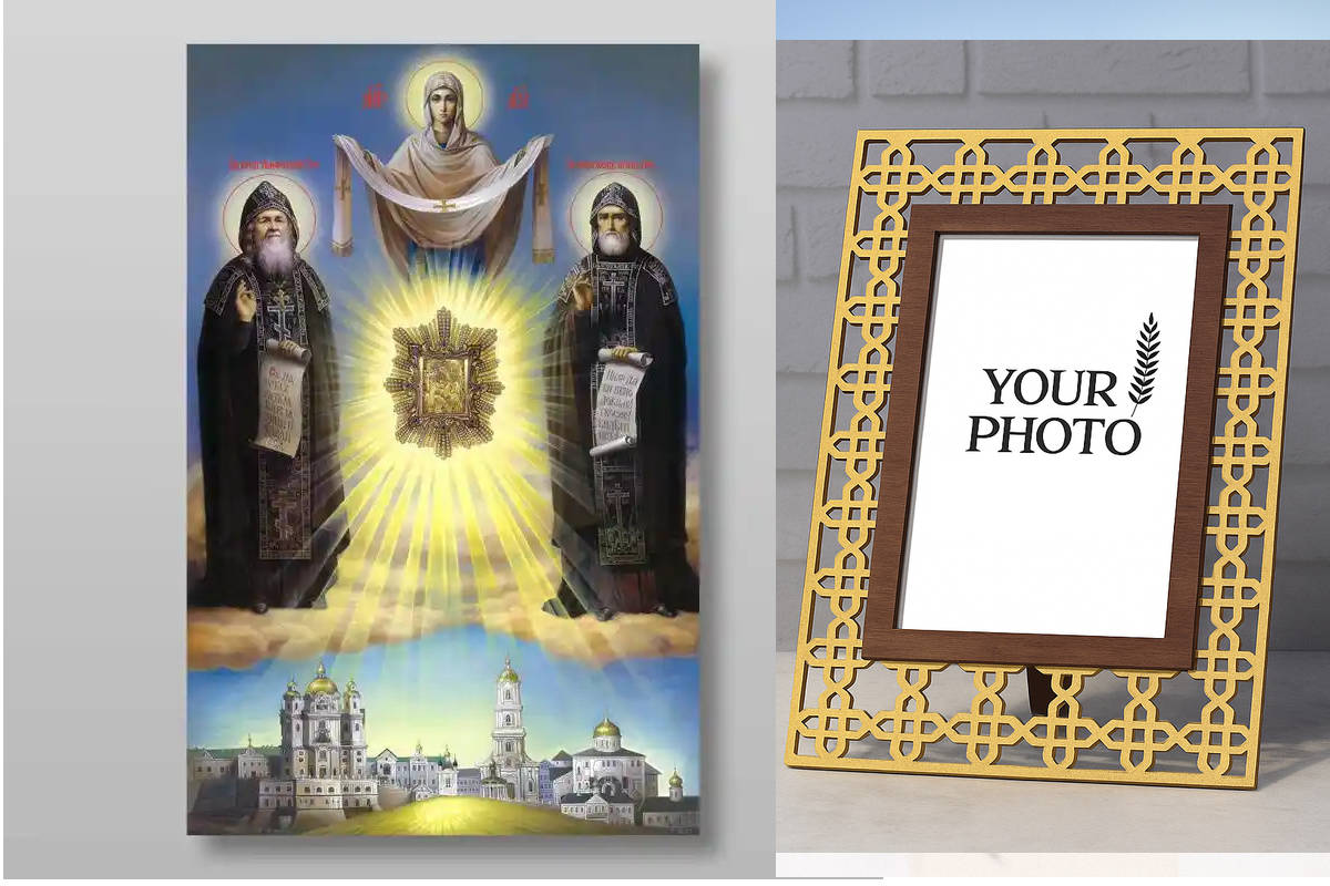 Εικόνα Ορθοδοξίας Πολυτελείας με σχεδιο Σταυρούς μαζι με Βάση σε 8 χρώματα με περίγραμμα χρυσό σε ξύλο Plywood (Πλακάζ) με βάση Ιώβ και Αμφιλόχιος Ποτχαγιέφσκι, Χειροποίητη Ελληνορθόδοξη , Κρεμαστή πλάκα βυζαντινής τέχνης, χριστιανική τέχνη Διάσταση 26x20 cm (10,2 x 7,9 ίντσες) INTRAEK3kadro3211-432735