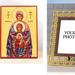 Εικόνα Ορθοδοξίας Πολυτελείας με σχεδιο Σταυρούς μαζι με Βάση σε 8 χρώματα με περίγραμμα χρυσό σε ξύλο Plywood (Πλακάζ) με βάση Οι Αγίες Μαρία και Άννα οι Δίκαιοι Πρόγονοι του Θεού με την Παναγία και τον Ιησού Χριστό, Ξύλινη Χειροποίητη Εικόνα Ελληνικής Βυζαντινής Στυλ Χειροποίητη Ελληνορθόδοξη εικόνα του Ιησού Χριστού, Κρεμαστή πλάκα βυζαντινής τέχνης, χριστιανική τέχνη Διάσταση 10x7 cm (3,9 x 2,8 ίντσες) INTRAEK3kadro3211-11210