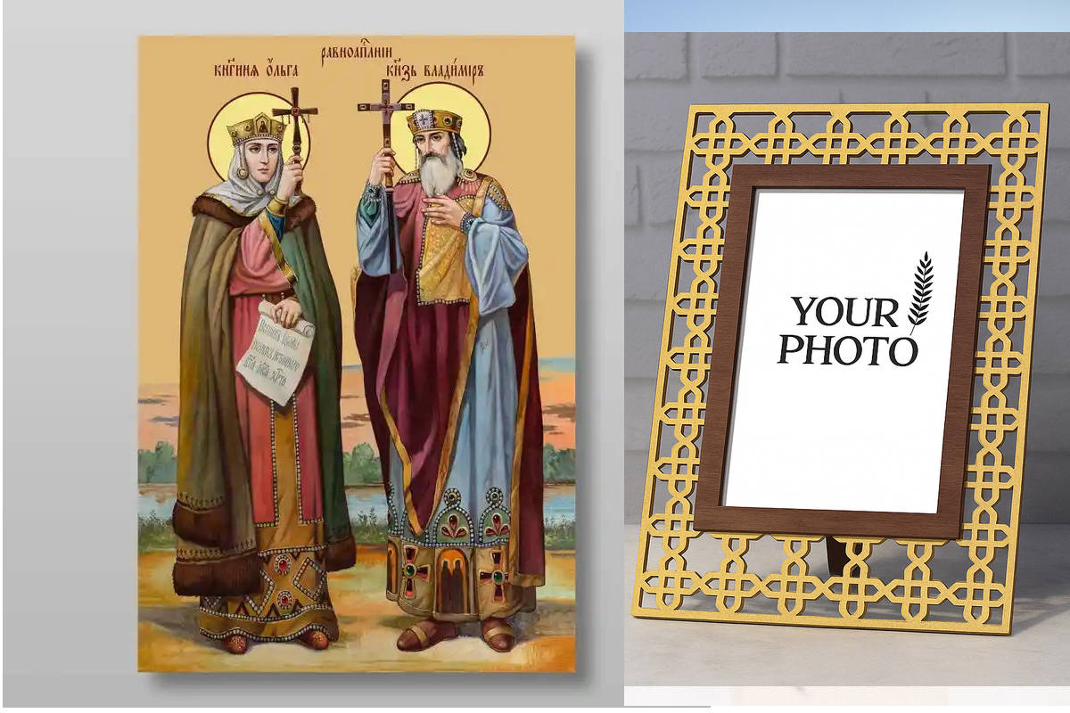 Εικόνα Ορθοδοξίας Πολυτελείας με σχεδιο Σταυρούς μαζι με Βάση σε 8 χρώματα με περίγραμμα χρυσό σε ξύλο Plywood (Πλακάζ) με βάση Οι άγιοι Βλαντιμίρ και Όλγα Χειροποίητη Ελληνορθόδοξη , Κρεμαστή πλάκα βυζαντινής τέχνης, χριστιανική τέχνη Διάσταση 21x15 cm (8,3 x 5,9 ίντσες) INTRAEK3kadro3211-321034