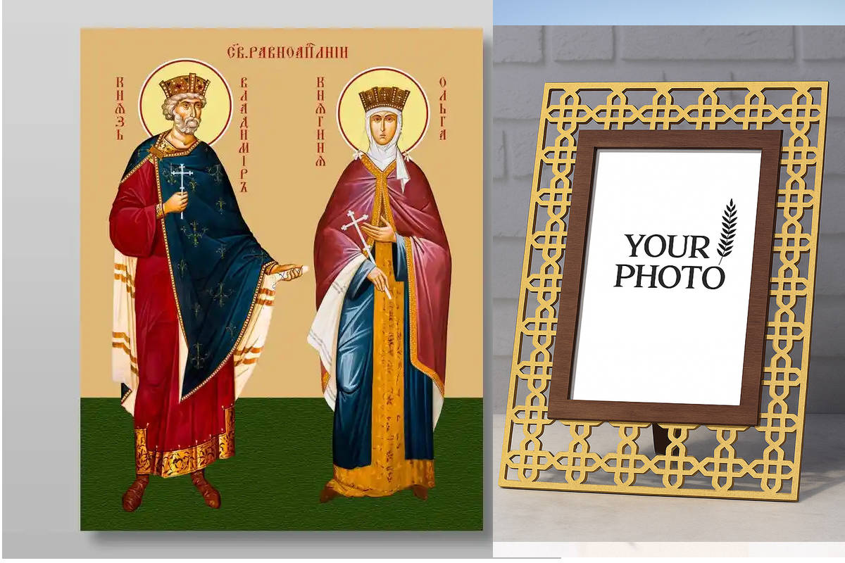 Εικόνα Ορθοδοξίας Πολυτελείας με σχεδιο Σταυρούς μαζι με Βάση σε 8 χρώματα με περίγραμμα χρυσό σε ξύλο Plywood (Πλακάζ) με βάση Οι άγιοι Βλαντιμίρ και Όλγα Χειροποίητη Ελληνορθόδοξη , Κρεμαστή πλάκα βυζαντινής τέχνης, χριστιανική τέχνη Διάσταση 21x15 cm (8,3 x 5,9 ίντσες) INTRAEK3kadro3211-321033