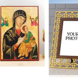 Εικόνα Ορθοδοξίας Πολυτελείας με σχεδιο Σταυρούς μαζι με Βάση σε 8 χρώματα με περίγραμμα χρυσό σε ξύλο Plywood (Πλακάζ) με βάση Παναγία της Αιώνιας Βοήθειας με τον Ιησού, Ξύλινη Χειροποίητη Εικόνα Ελληνικού Βυζαντινού Στυλ σε τοίχο Κρεμαστή σε Ξυλόπλακα Θρησκευτικό θέμα Χειροποίητη Ελληνορθόδοξη εικόνα του Ιησού Χριστού, Κρεμαστή πλάκα βυζαντινής τέχνης, χριστιανική τέχνη Διάσταση 26x20 cm (10,2 x 7,9 ίντσες) INTRAEK3kadro3211-22610804