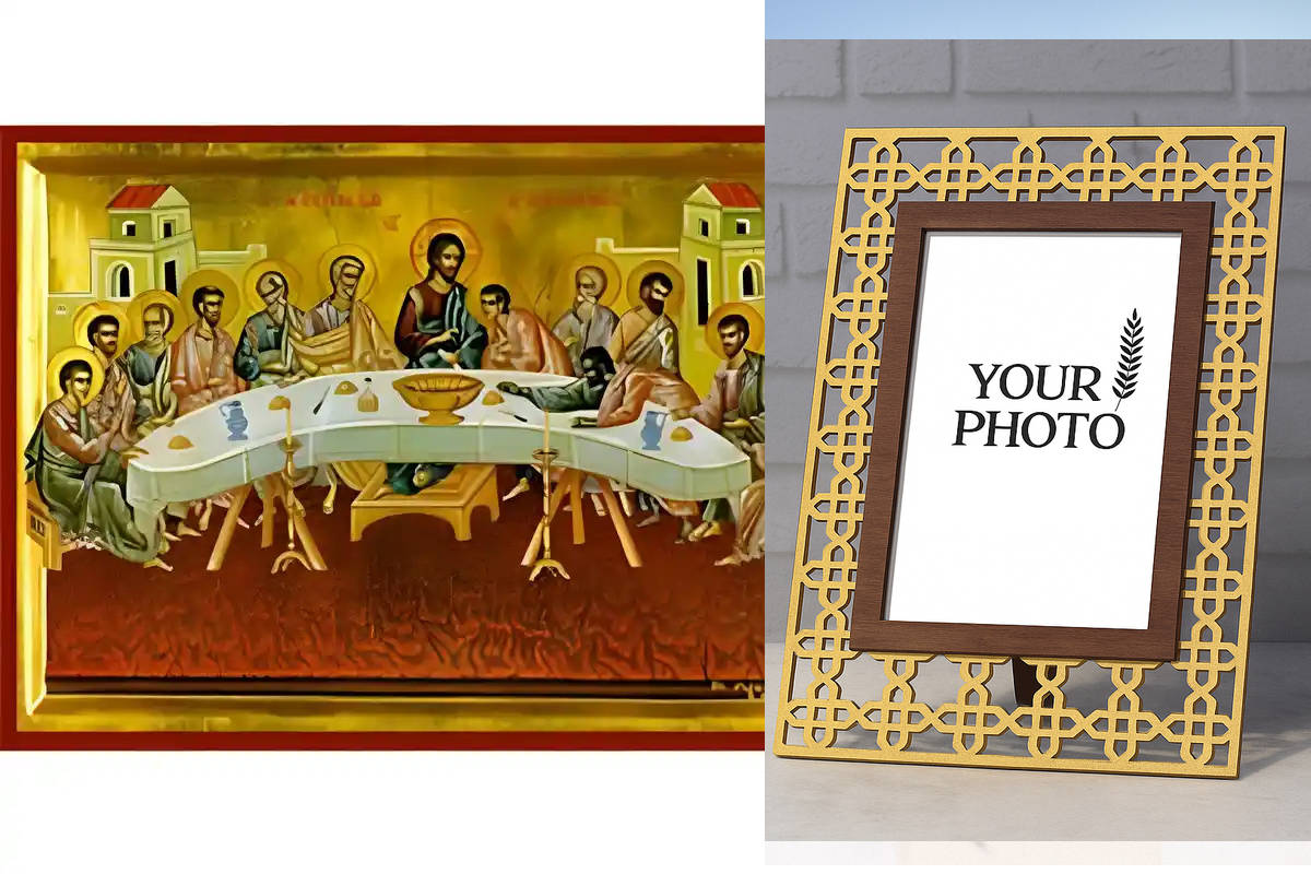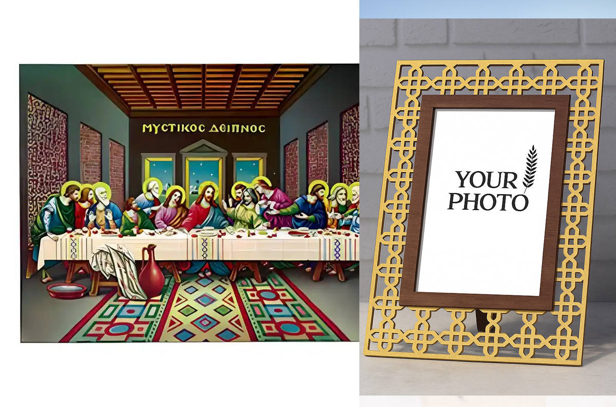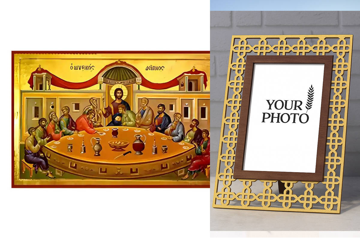 Εικόνα Ορθοδοξίας Πολυτελείας με σχεδιο Σταυρούς μαζι με Βάση σε 8 χρώματα με περίγραμμα χρυσό σε ξύλο Plywood (Πλακάζ) με βάση Εικόνα Μυστικός Δείπνος Χειροποίητη Ελληνορθόδοξη , Κρεμαστή πλάκα βυζαντινής τέχνης, χριστιανική τέχνη Διάσταση 10x7 cm (3,9 x 2,8 ίντσες) INTRAEK3kadro3211-670970