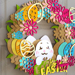 Intra απο ξύλο plywood Χρώμα wenge 3mm-4mm πάχος - Πασχαλινό στεφάνι LaserCut. Ανοιξιάτικο ντεκόρ Δίασταση 15x15 cm INTRAFABR-120037255