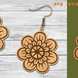 Intra απο ξύλο plywood Χρώμα wenge 3mm-4mm πάχος - Σκουλαρίκια κομμένα με λέιζερ λουλουδιών 5 Δίασταση 3x3 cm INTRAFABR-104050509