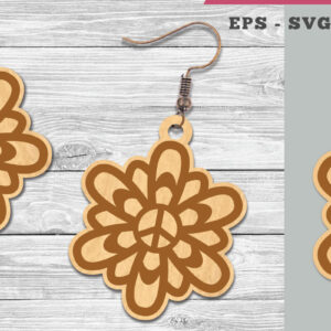 Intra απο ξύλο plywood Χρώμα wenge 3mm-4mm πάχος - Σκουλαρίκια με λέιζερ Flower Peace 1 Δίασταση 3x3 cm INTRAFABR-105856331