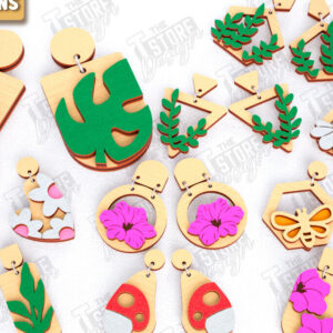 Intra απο ξύλο plywood Χρώμα wenge 3mm-4mm πάχος - Σκουλαρίκια με λουλούδια Bundle | CNC Δίασταση 3x3 cm INTRAFABR-69704825