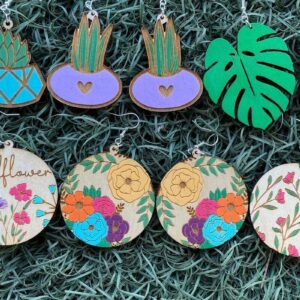 Intra απο ξύλο plywood Χρώμα wenge 3mm-4mm πάχος - Σκουλαρίκια με λουλούδια Bundle | CNC Δίασταση 3x3 cm INTRAFABR-69704825